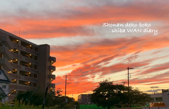今日の夕焼けも見事でした。暗くなる前に、貫太の散歩に行けてラッキ〜 OK!  家に戻・・・
